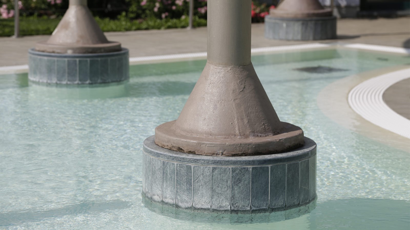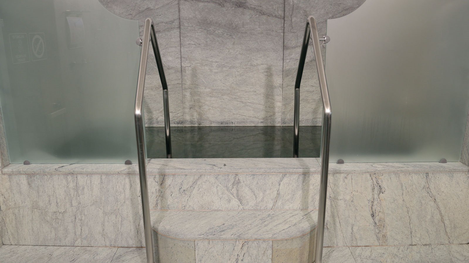 Rivestimento, scale, terrazze, bagno turco. Architetto: Lombardini, Ing. Turino Materiale: Serpentino Verde Giada sabbiato e spazzolato. Consegna: completato nel 2007.