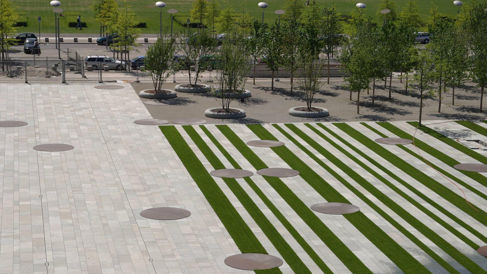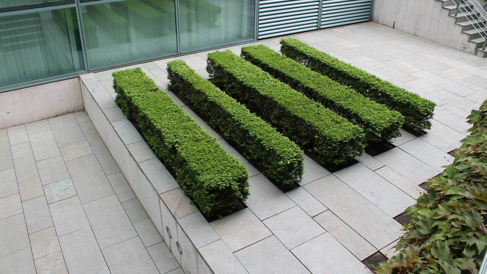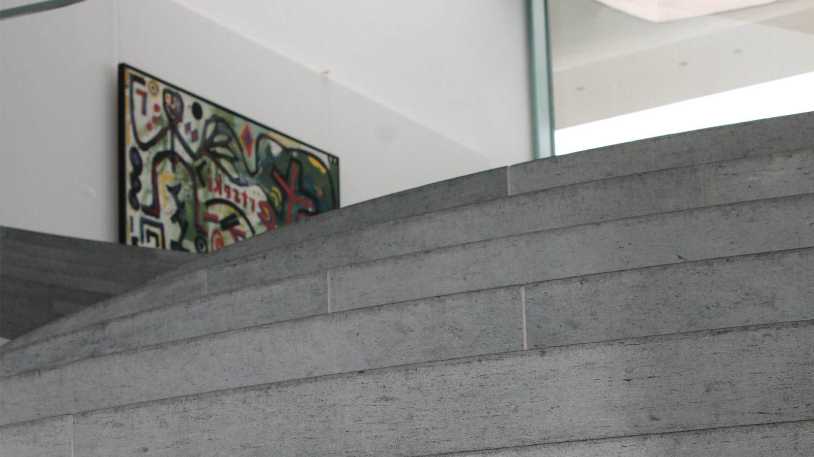 Pavimenti interni ed esterni, scale e fioriere. Architetto: Axel Schultes, Charlotte Frank, Christoph Witt. Materiale: Serpentino Verde Vittoria sabbiato. Consegna: completato nel 2004.