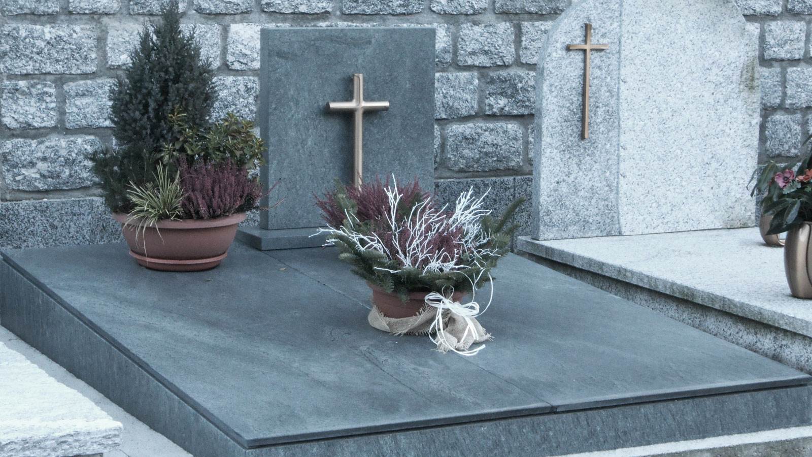 Anche i blocchi naturali trovano impiego nell'arte funeraria sotto forma di lapidi grezze lavorate e scolpite manualmente, cordoli a spacco naturale o a taglio con fresa.