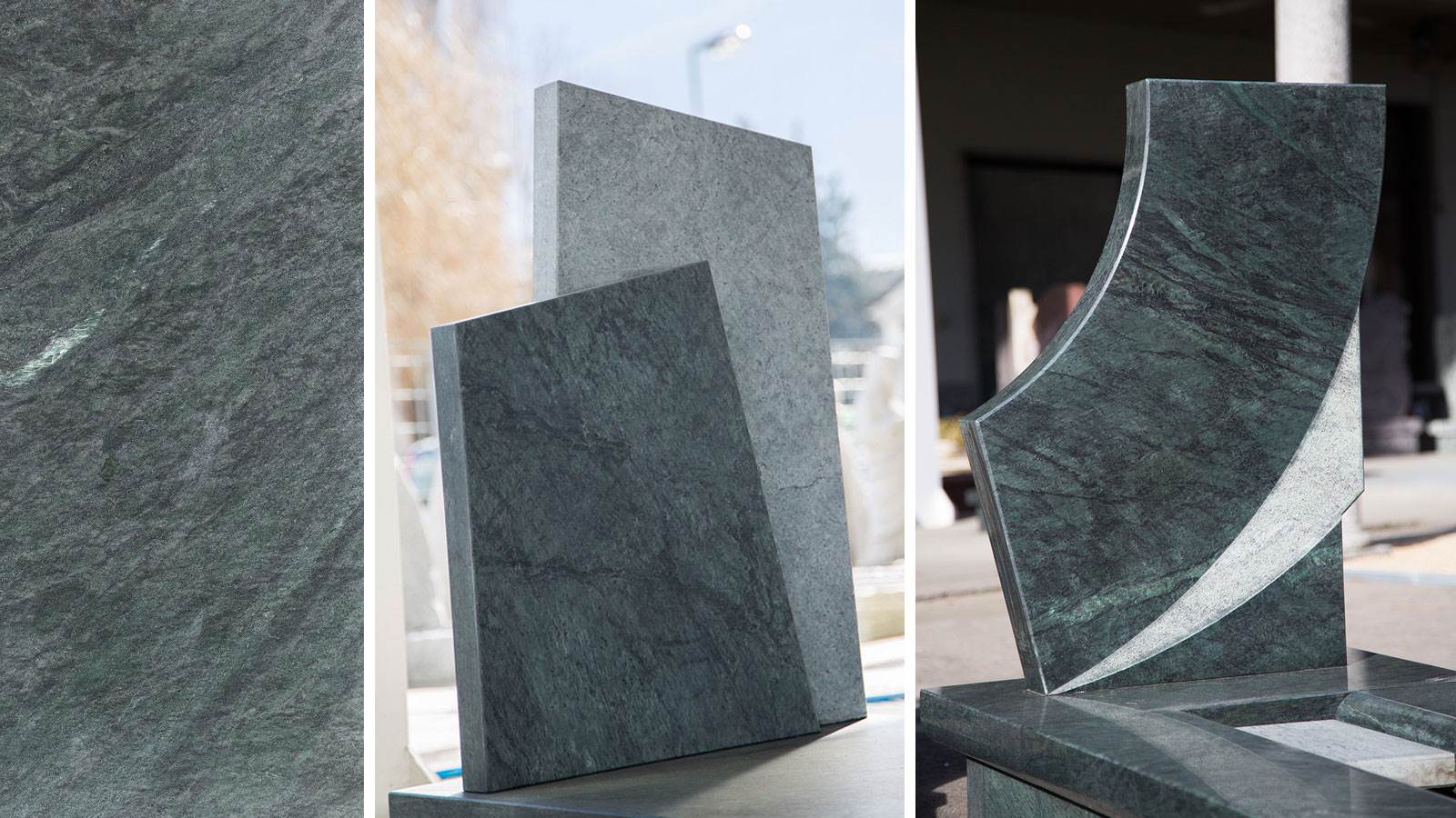 Il serpentino a spacco e il serpentino massiccio vengono utilizzati per la realizzazione di lapidi e tombe su misura, in base alle richieste del committente.