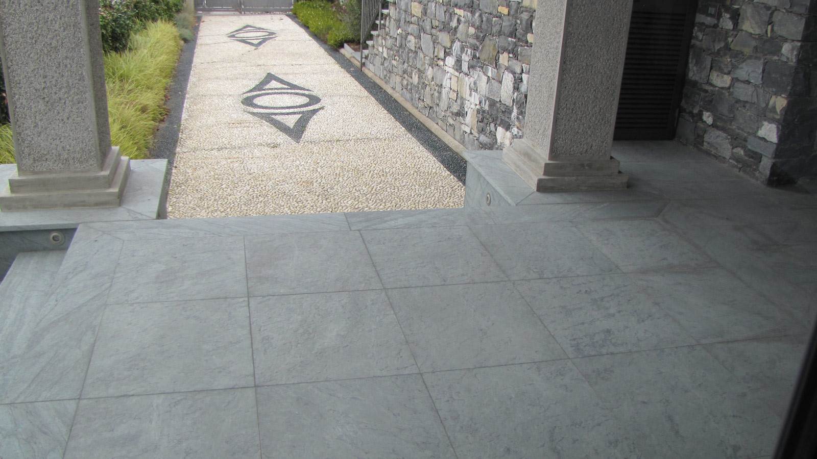 Il serpentino è largamente impiegato per ricavare pavimentazioni di vari spessori a partire da cm 1, grazie all’elevato carico di rottura del materiale.