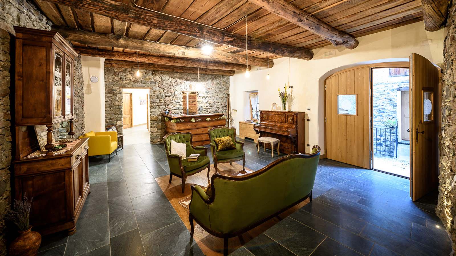 Tra gli utilizzi del serpentino particolarmente noto è il tetto in “piode”, uno stile di copertura che ha raggiunto fama internazionale grazie alla resistenza della sua struttura, solida e ben congegnata, e al caratteristico timbro cromatico discreto e tenue.